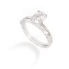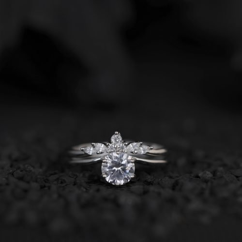 – Statement Piece: The chevron solitaire stone makes a bold statement.
