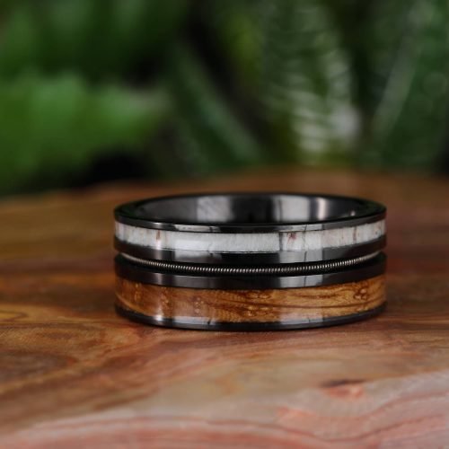 Dualwood Tungsten Mens Ring – Tungsten is a rare, naturally occurring silvery-gray metal. In jewelery, it can be finished in many other colors such as black, rose gold, or blue. Tungsten is the second hardest material after diamonds. It’s extremely durable, making it an especially popular choice for men’s wedding rings. Out of every other metal, tungsten boasts the highest melting point. It’s also hypoallergenic and very affordable, making it a great choice for your wedding ring. Need help selecting a ring? Contact Us