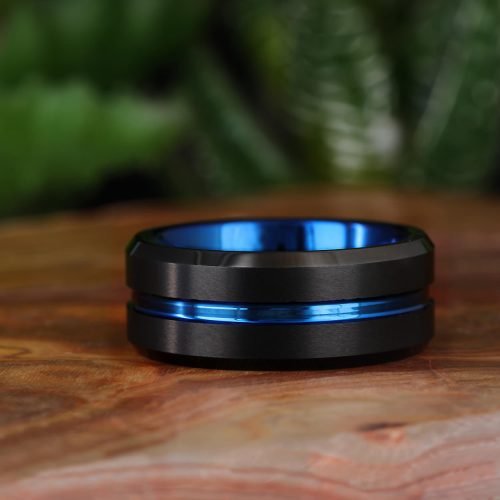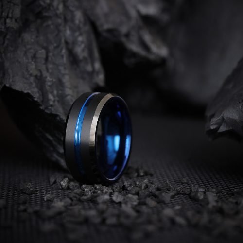 Electric Midnight Mens Ring – a masterpiece crafted from the finest materials to embody strength, elegance, and timeless style. Tungsten, a rare and naturally occurring silvery-gray metal, forms the core of this exceptional piece.