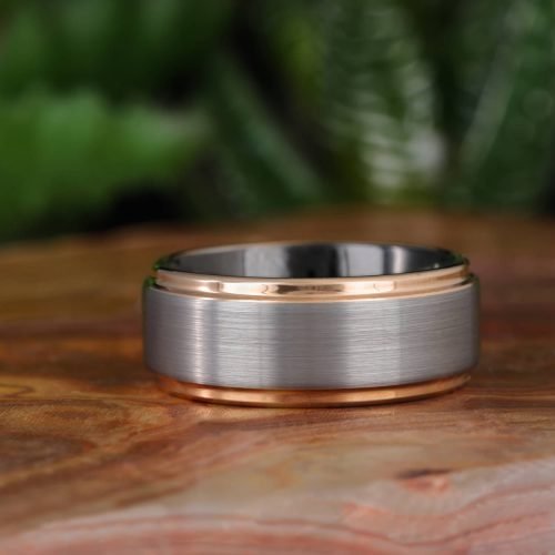 Infused Silver Gold Mens Ring – a masterpiece crafted from the finest materials to embody strength, elegance, and timeless style. Tungsten, a rare and naturally occurring silvery-gray metal, forms the core of this exceptional piece. Renowned for its durability and resilience, tungsten ranks as the second hardest material on Earth after diamonds. This remarkable attribute ensures that your ring will withstand the test of time, retaining its impeccable beauty for years to come.
