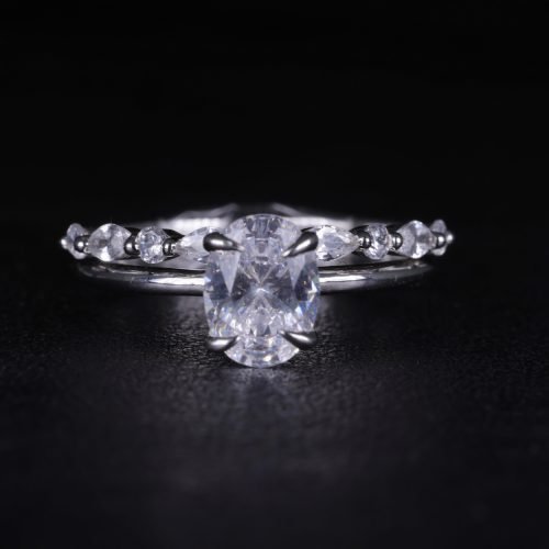 Oval Solitaire CZ Ring with Accent Band