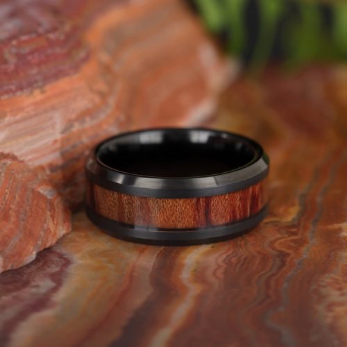 Steelwood Fusion Mens Ring – Tungsten is a rare, naturally occurring silvery-gray metal. In jewelery, it can be finished in many other colors such as black, rose gold, or blue. Tungsten is the second hardest material after diamonds. It’s extremely durable, making it an especially popular choice for men’s wedding rings. Out of every other metal, tungsten boasts the highest melting point. It’s also hypoallergenic and very affordable, making it a great choice for your wedding ring. Need help selecting a ring? Contact Us