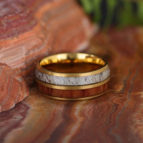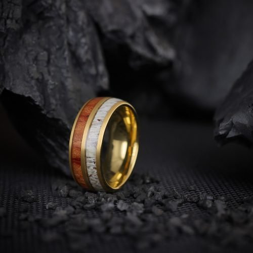 Two Tone Golden Wood Grain Mens Ring, the best ring you’ll ever need!