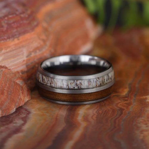 Woodland Elegance Mens Ring – Tungsten is a rare, naturally occurring silvery-gray metal. In jewelery, it can be finished in many other colors such as black, rose gold, or blue. Tungsten is the second hardest material after diamonds. It’s extremely durable, making it an especially popular choice for men’s wedding rings. Out of every other metal, tungsten boasts the highest melting point. It’s also hypoallergenic and very affordable, making it a great choice for your wedding ring. Need help selecting a ring? Contact Us